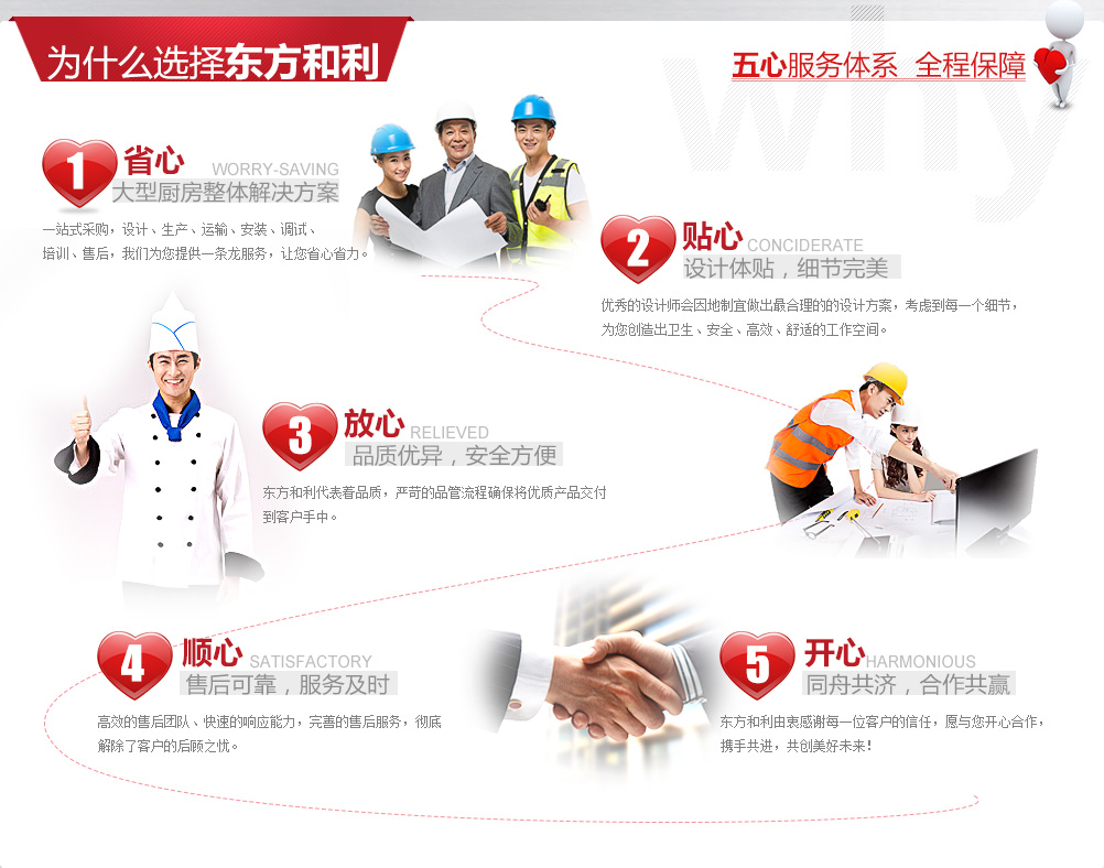 沈陽東方和利廚業(yè)有限公司,是一家業(yè)務(wù)覆蓋全國的廚房設(shè)備制造商及商用廚房系統(tǒng)集成服務(wù)商,致力于為廣大用戶提供高品質(zhì)的廚房設(shè)備和完善的工程服務(wù)。 與傳統(tǒng)的"生產(chǎn)商"或"銷售商"不同,東方和利并不僅僅生產(chǎn)或銷售廚房設(shè)備,而是為客戶提供廚房整體解決方案的"服務(wù)商"。我們以客戶需求為中心,采用"五心"服務(wù)體系全程保障,為客戶提供廚房設(shè)計(jì)咨詢、設(shè)備生產(chǎn)、運(yùn)輸、安裝、調(diào)試、培訓(xùn)、售后等全套服務(wù),讓您體驗(yàn)到管家式服務(wù)的周到與便利。 東方和利憑借質(zhì)量和服務(wù)優(yōu)勢,在全國各大廚房工程招標(biāo)中不斷中標(biāo),客戶涵蓋了單位食堂(企業(yè)、政府機(jī)關(guān)、部隊(duì)、學(xué)校、醫(yī)院)、星級(jí)酒店、餐飲、中央廚房、團(tuán)膳配餐等多種類型。 我公司同時(shí)代理多種名牌食品機(jī)械、酒店用品,為客戶提供"一站式"商用廚具整體解決方案。我們秉承"質(zhì)量第一,信譽(yù)至上"的原則,希望能在不久的將來為您提供優(yōu)質(zhì)的產(chǎn)品和服務(wù)!
